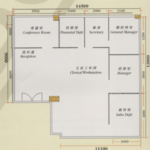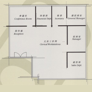 | 若平面图内各部门的编排组合, 跟面积的总体 |